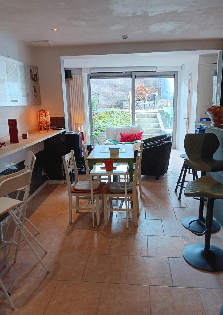 Het café op gelijkvloers is zeer aantrekkelijke voor intieme feestjes 30- 50 personen aan 150 euro, 50 euro borg. Er kunnen thema’s uitgewerkt worden, ook voor herdenkingen en poëzieavonden. Wij voorzien de drank, de verjaarsdagtaart mag meegebracht worden en andere versnaperingen. Er mag ook versierd worden en voor achtergrondmuziek gezorgd worden. Ook geschikt voor recepties, lezingen, debatten. Er is een nieuwe beamer aangekocht en groot scherm. We beschikken over een terras.