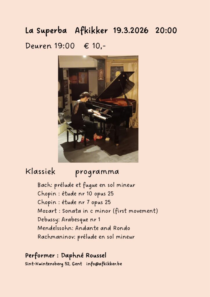 Donderdag 19.3 terug La Superba in Afkikker mat Daphné Roussel om 20 u, inkom 10 euro